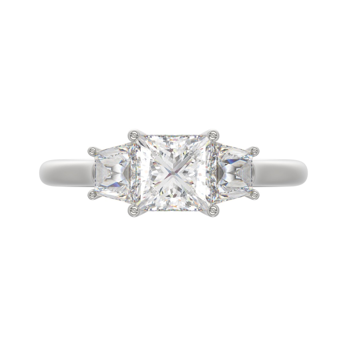 14K WHITE GOLD 1 3/4CT PRINCESS/TRAPEZOID DIAMOND LADIES RING (CENTER STONE PRINCESS DIAMOND 1 1/4CT)