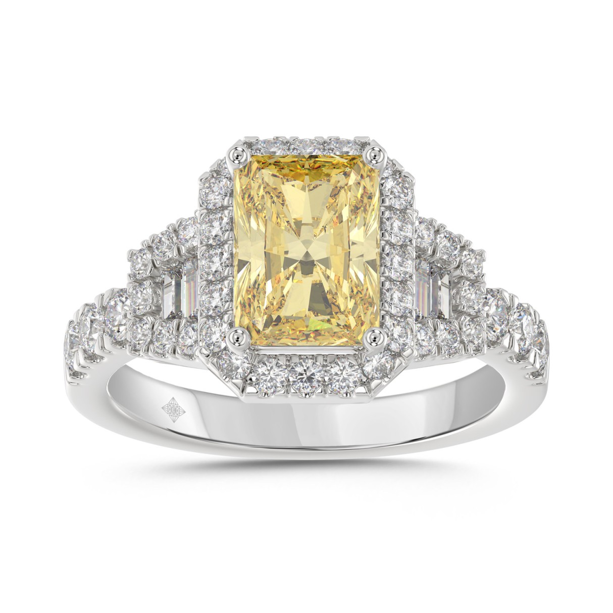 14K WHITE GOLD 2 3/4CT ROUND/BAGUETTE/RADIANT DIAMOND LADIES RING (CENTER STONE YELLOW RADIANT DIAMOND 2CT)
