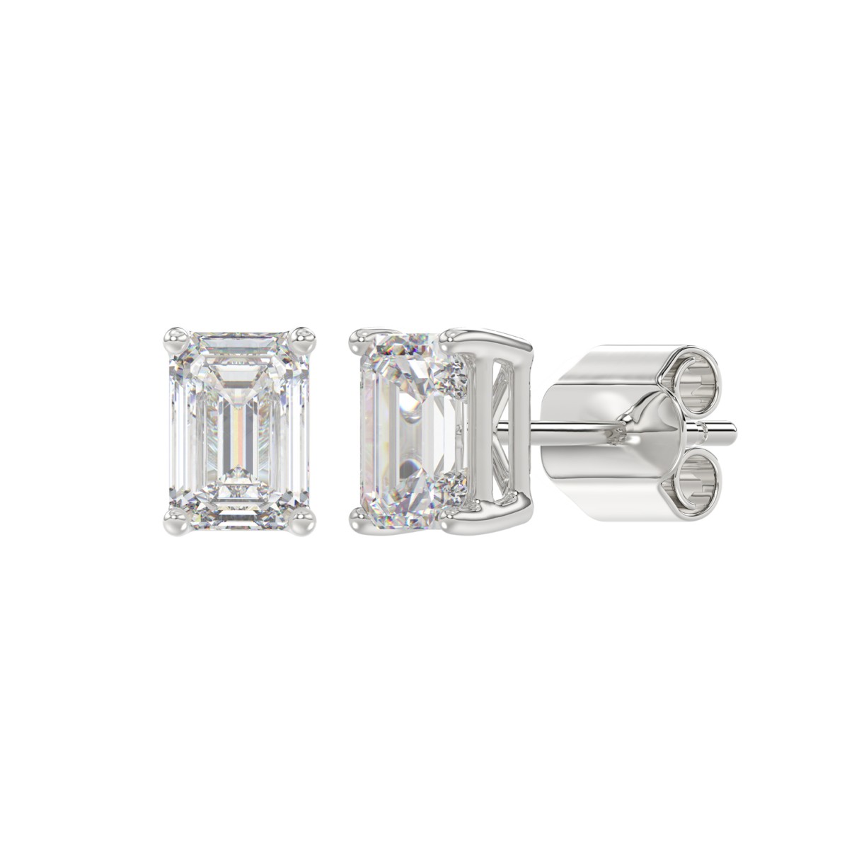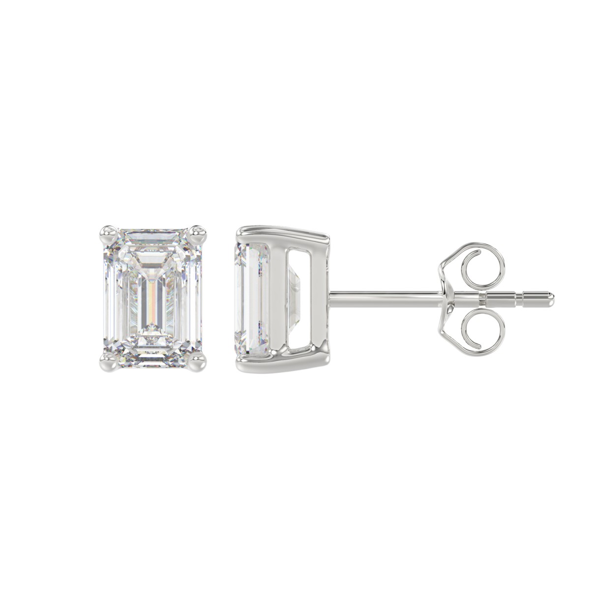 14K WHITE GOLD 2CT EMERALD DIAMOND LADIES SOLITAIRE EARRINGS
