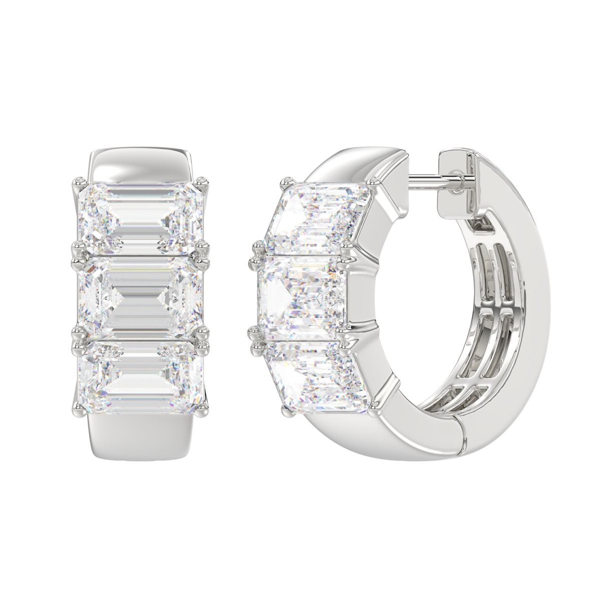 14K WHITE GOLD 3.00CT EMERALD DIAMOND LADIES HOOPS EARRINGS