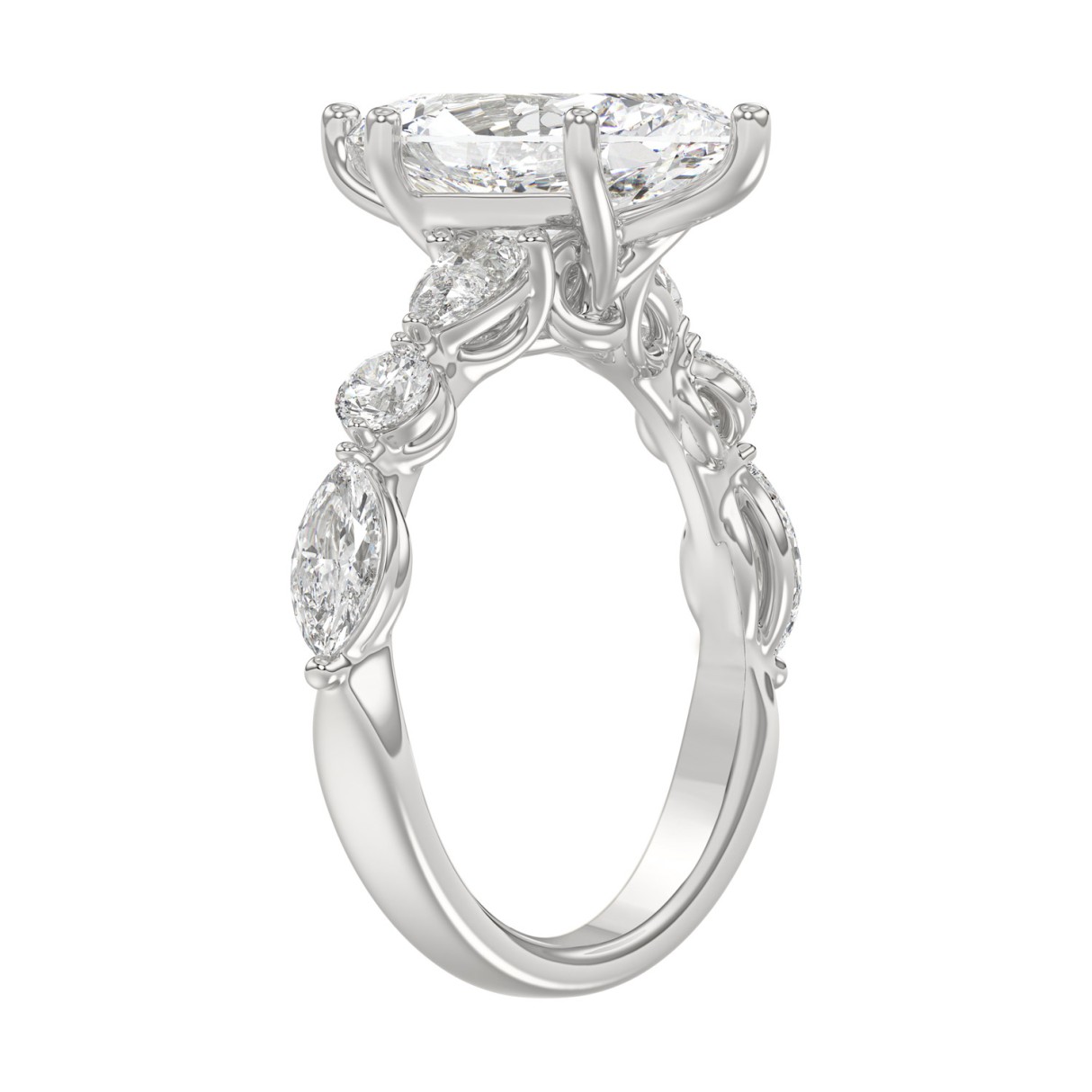 14K White Gold Bridal Fashion Ring for Ladies 4CT Round & Marquise& Pear Cut Diamonds 3.00CT Marquise Center stone (Color F-G -Clarity VS1/VS