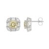 14K WHITE GOLD CRAFTED WITH 18K YELLOW GOLD BACK PLATE 1 1/3CT ROUND/BAGUETTE/YELLOW CUSHION DIAMOND LADIES EARRINGS