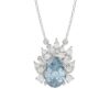 14K WHITE GOLD CRAFTED WITH 18K YELLOW GOLD BACK PLATE 1 1/4CT ROUND/BLUE PEAR/BAGUETTE DIAMOND LADIES NECKLACE WITH CHAIN