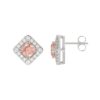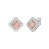 14K WHITE GOLD CRAFTED WITH 18K YELLOW GOLD BACK PLATE 1 1/4CT ROUND/PINK CUSHION DIAMOND LADIES EARRINGS
