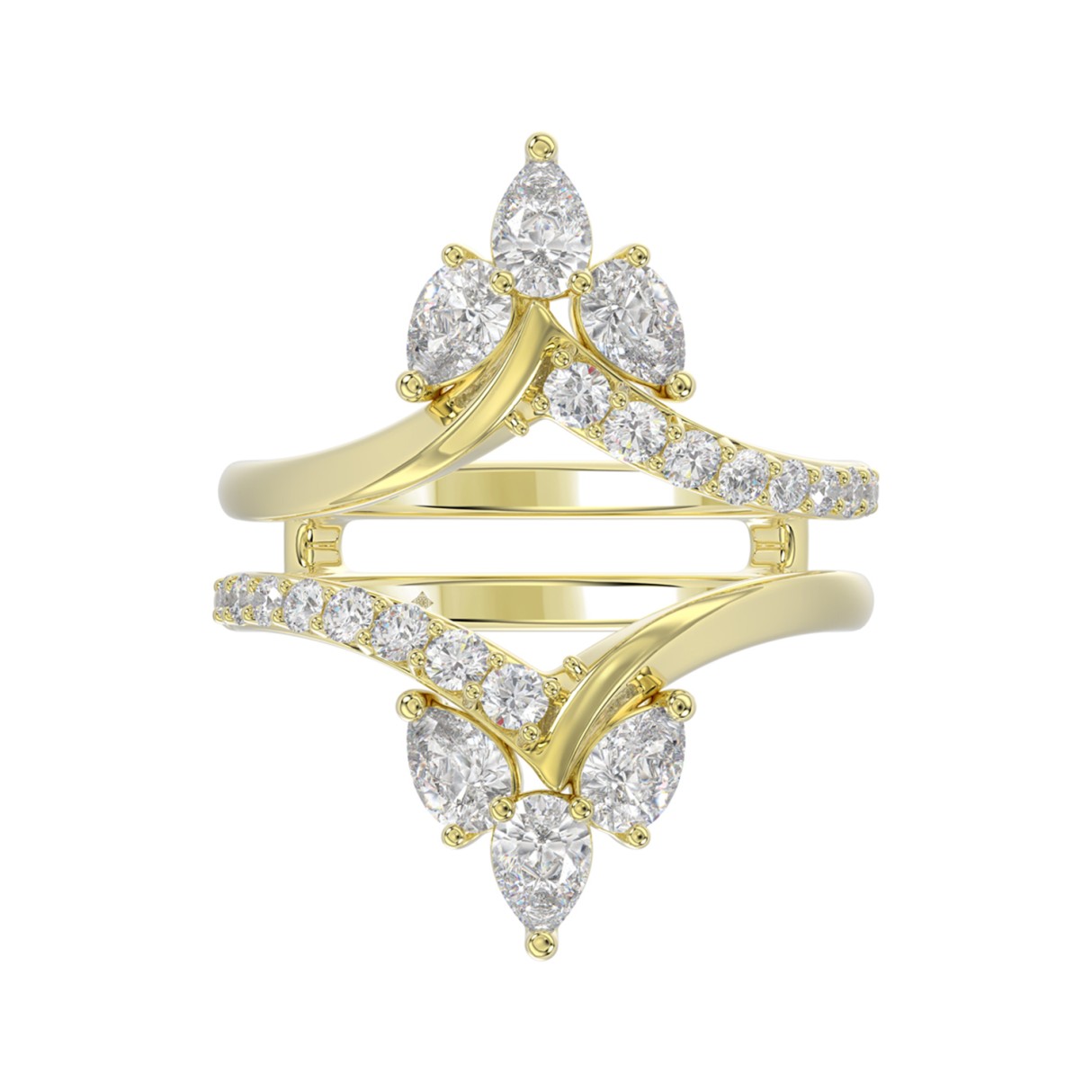 14K YELLOW GOLD 1 1/4CT ROUND/PEAR DIAMOND LADIES WRAP RING