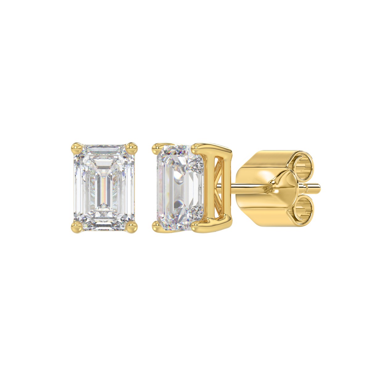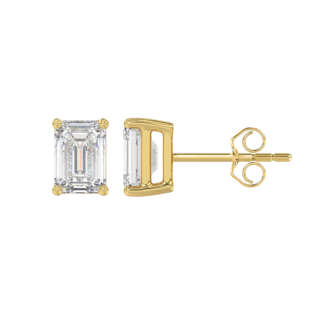 14K YELLOW GOLD 2CT EMERALD DIAMOND LADIES SOLITAIRE EARRINGS
