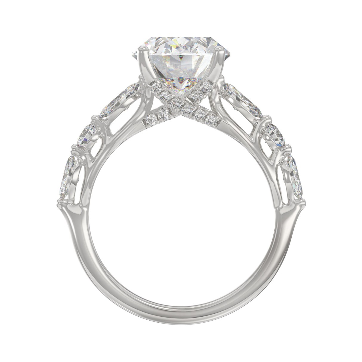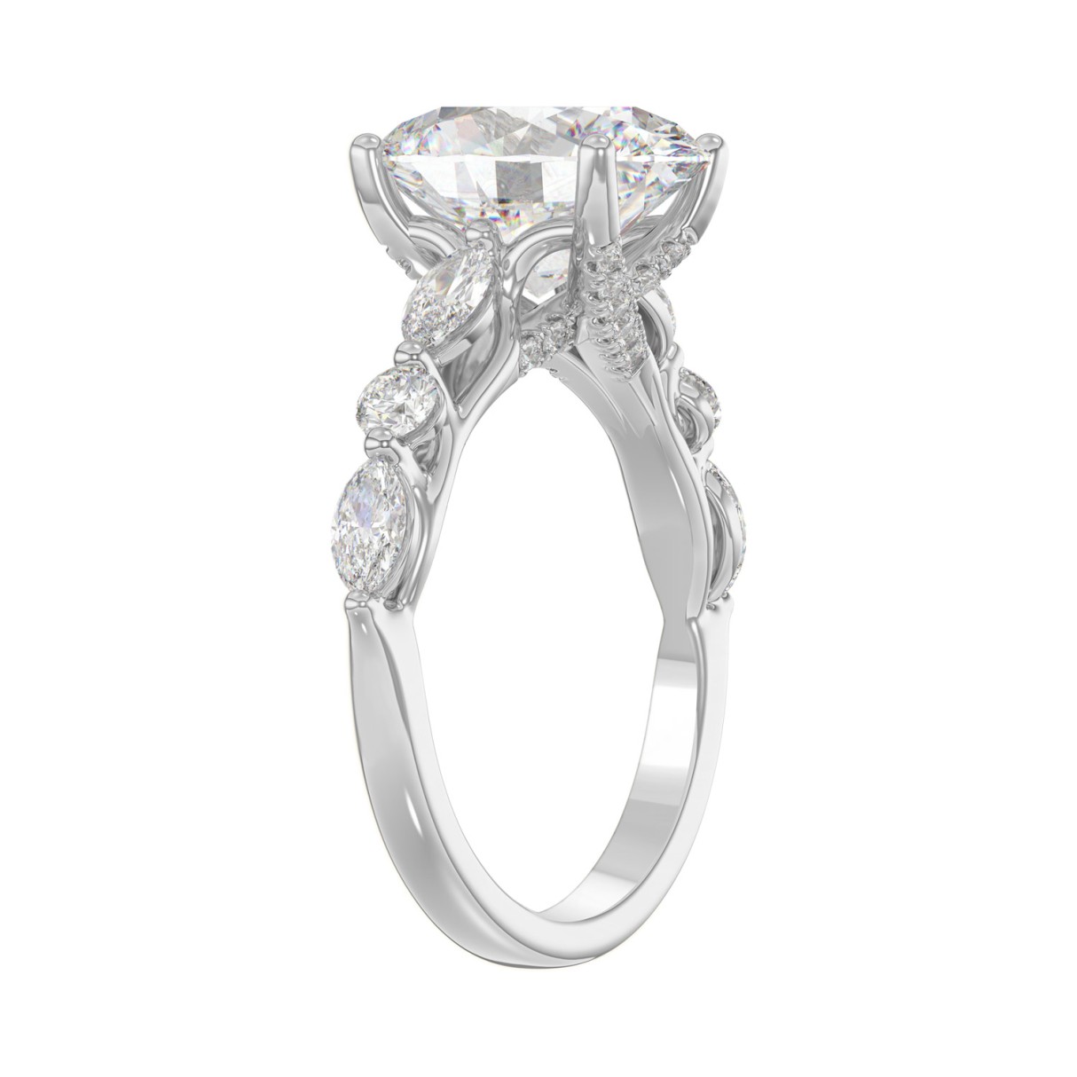 Elegant 14K White Gold Bridal Fancy Ring for Ladies 3 3/4CT Round & Marquise& Oval Cut Diamonds 3.00CT Center stone (Color F-G -Clarity VS1/V