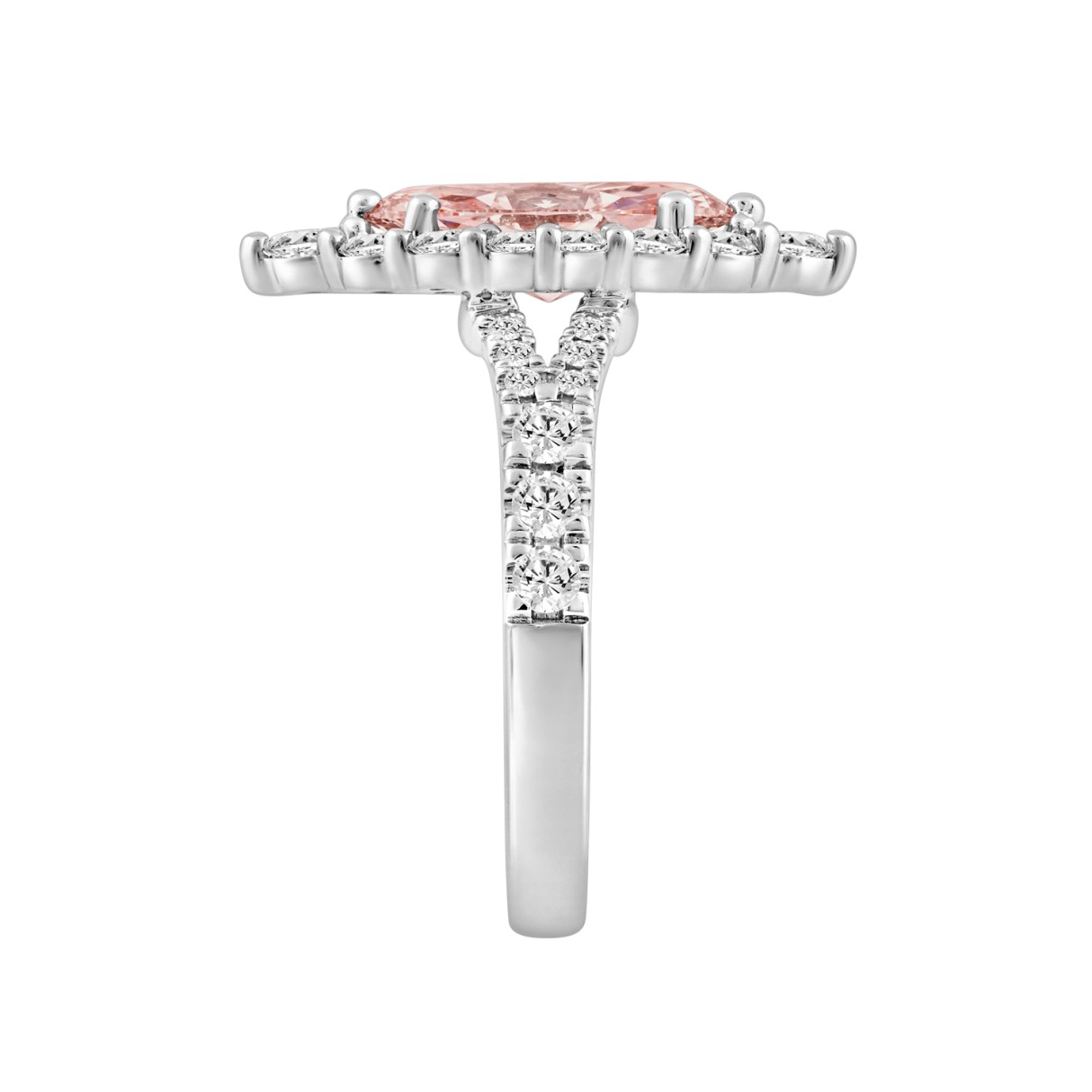 ETERNAL BLUSH COLLECTION 14K WHITE GOLD 3 1/4CT ROUND/MARQUISE DIAMOND LADIES RING (CENTER STONE PINK MARQUISE DIAMOND 2CT)