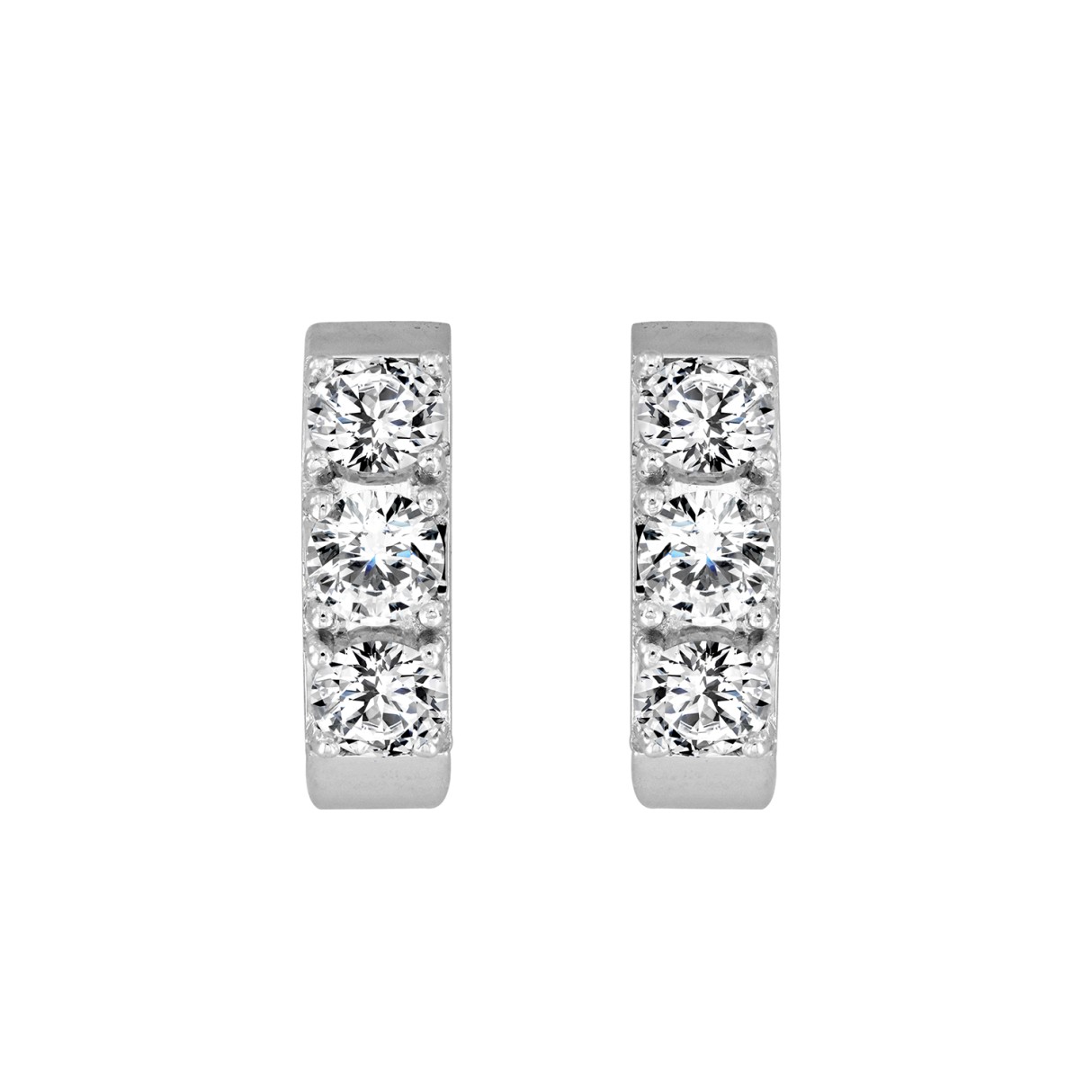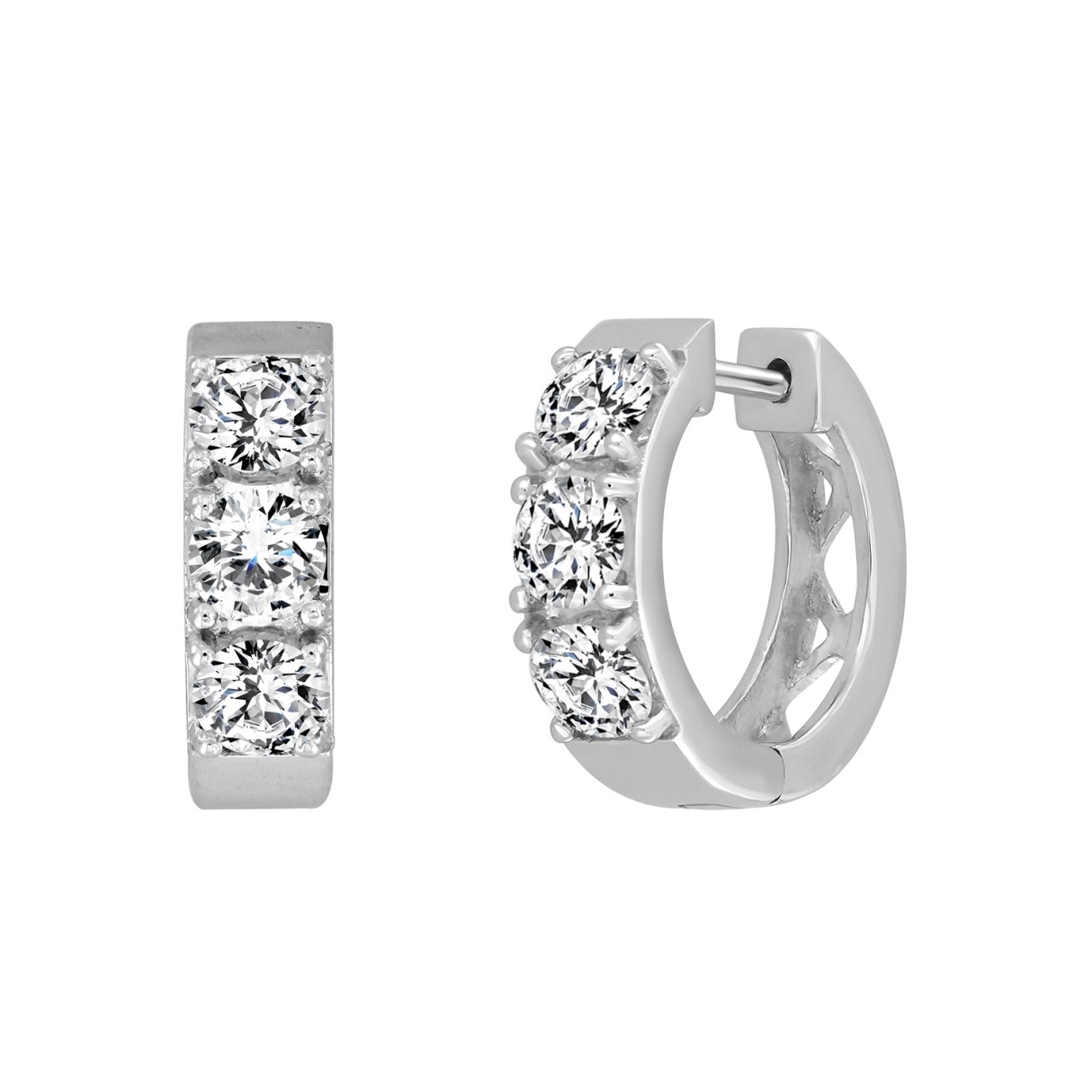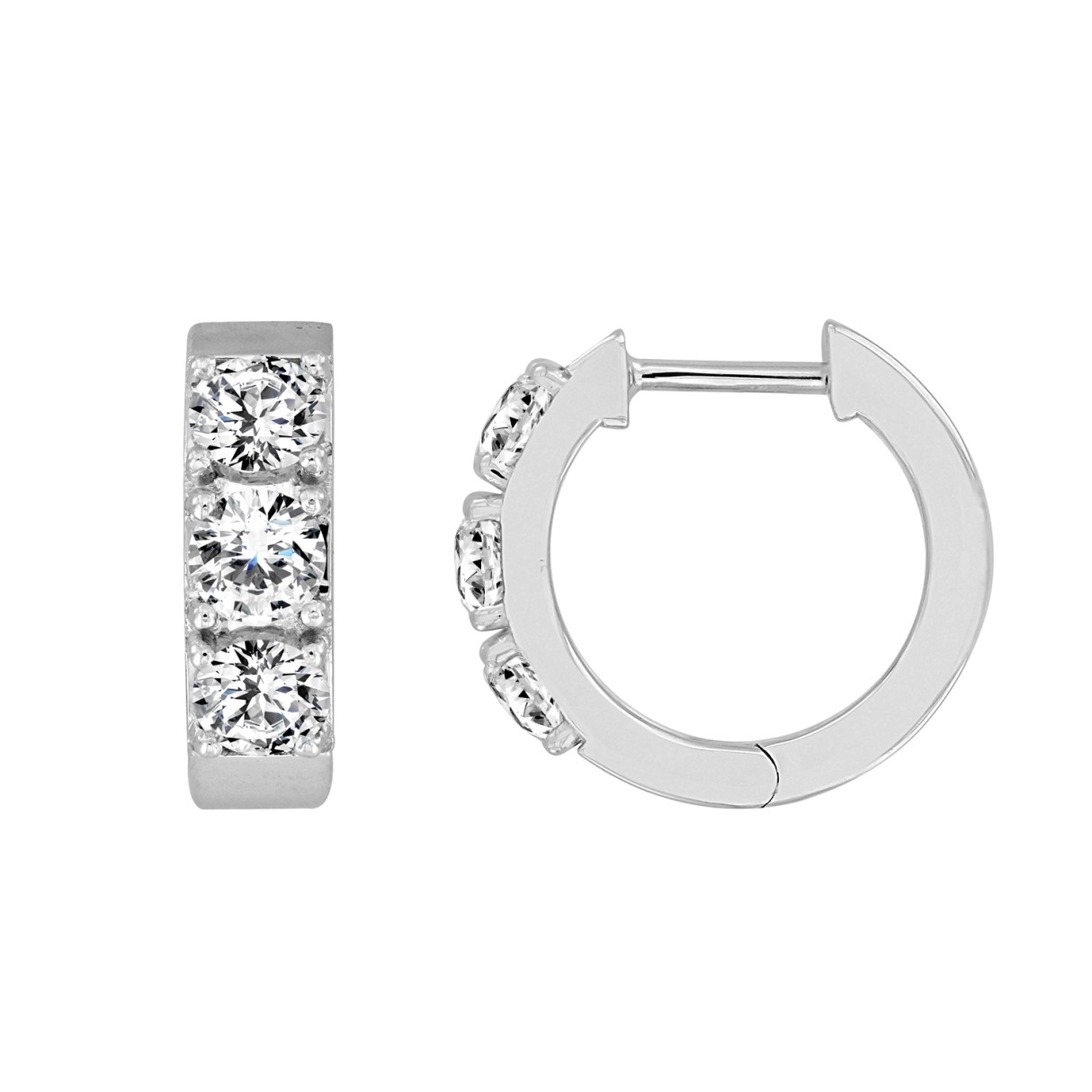 LADIES HOOP EARRINGS 1 1/2CT ROUND DIAMOND 14K WHITE GOLD