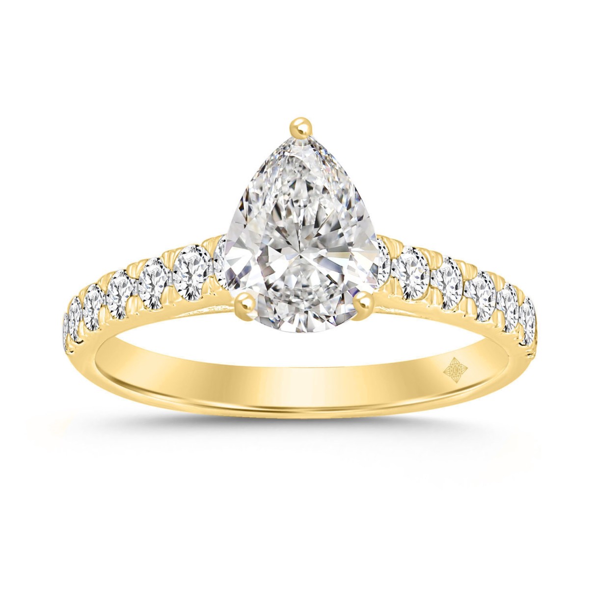 LADIES RING 1 1/2CT ROUND/PEAR DIAMOND 14K YELLOW GOLD (CENTER STONE PEAR DIAMOND 1CT)