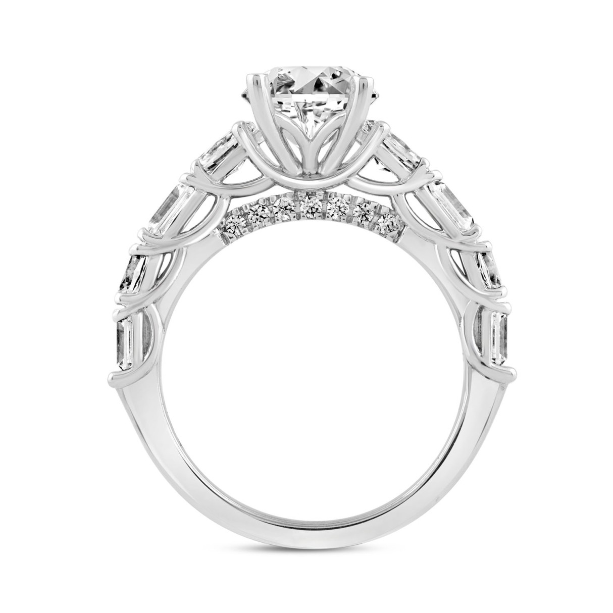 LADIES RING 3 1/2CT ROUND/EMERALD/OVAL DIAMOND 14K WHITE GOLD (CENTER STONE OVAL DIAMOND 2.00CT)