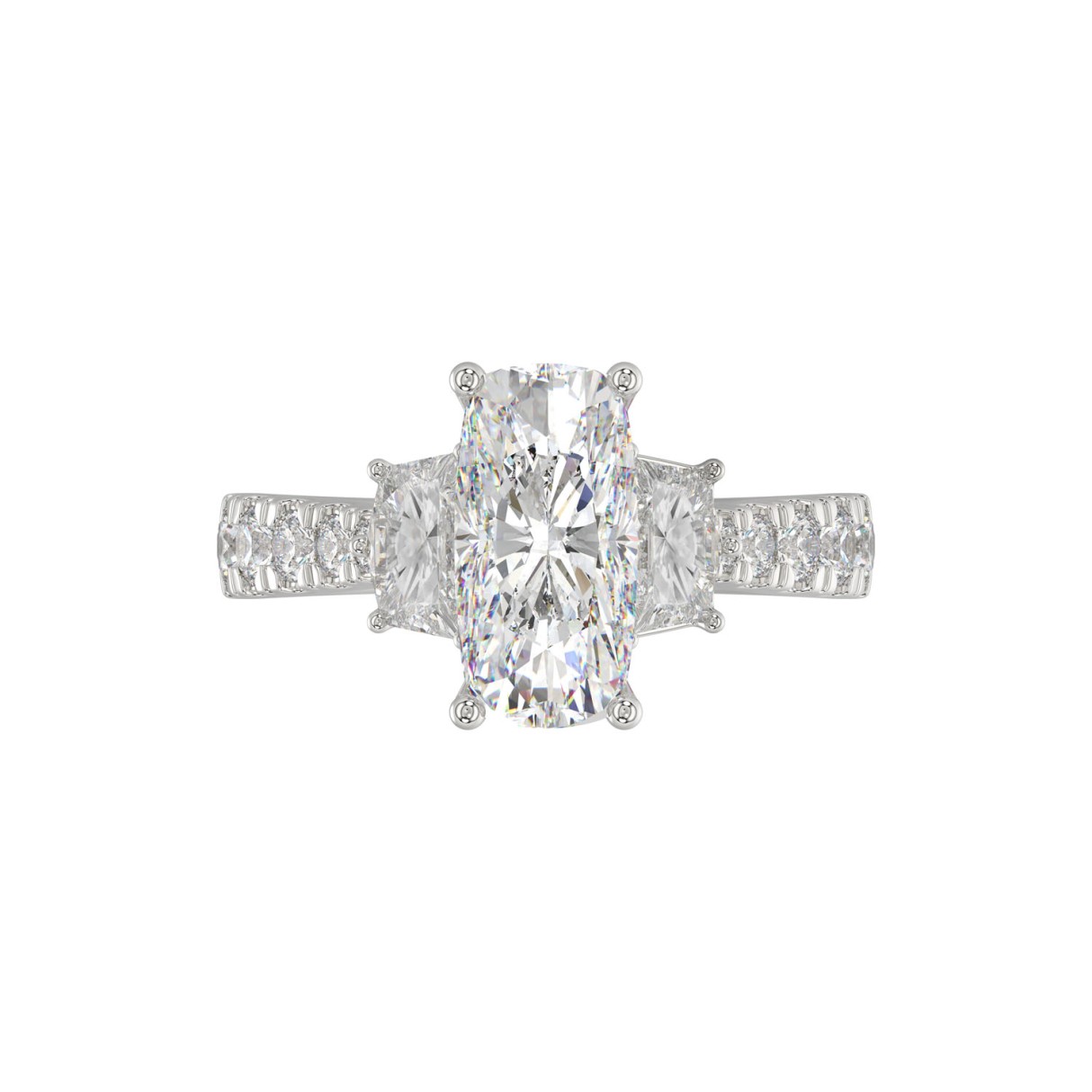 LADIES RING 3.33CT ROUND/CUSHION/BAGUETTE DIAMOND WHITE PLATINUM (CENTER STONE CUSHION DIAMOND 2CT)