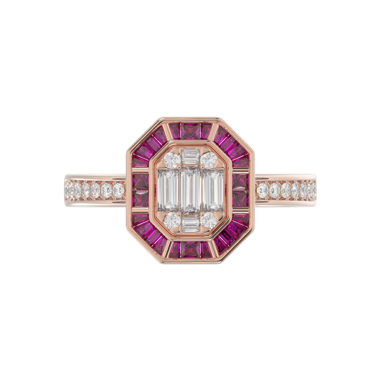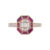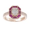 LADIES RING 3/4CT ROUND/BAGUETTE/PRINCESS TRAPEZOID RUBY DIAMOND 14K ROSE GOLD