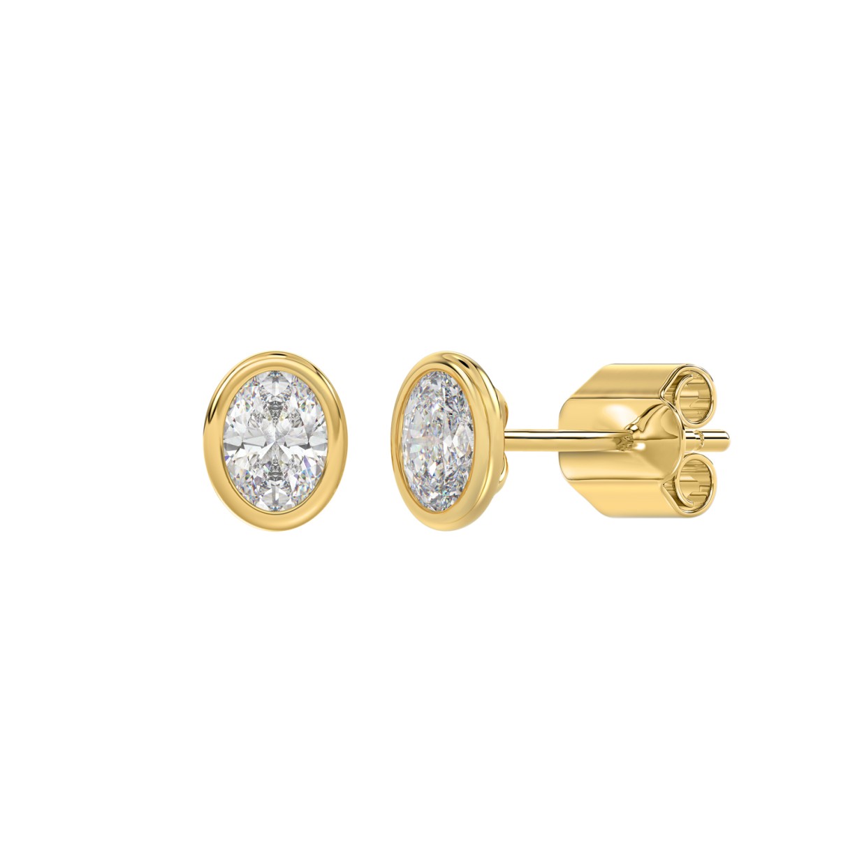 LADIES SOLITAIRE EARRINGS 1CT OVAL DIAMOND 14K YELLOW GOLD