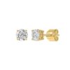 LADIES SOLITAIRE EARRINGS 1CT ROUND DIAMOND 14K YELLOW GOLD