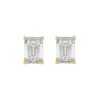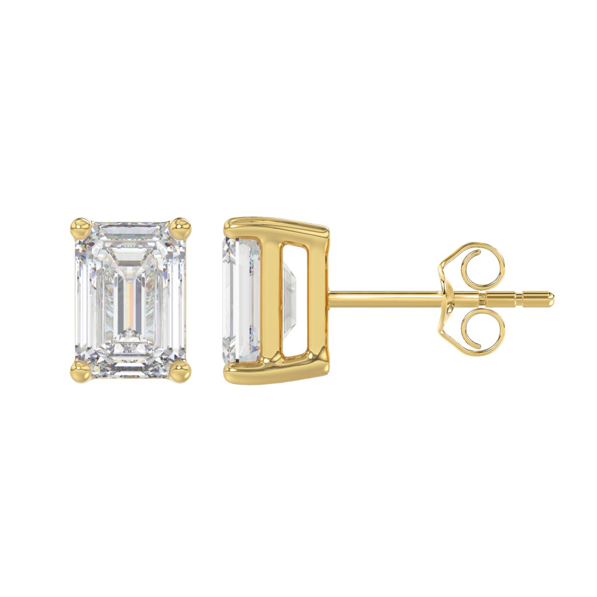 LADIES SOLITAIRE EARRINGS 4.00CT EMERALD DIAMOND 14K YELLOW GOLD