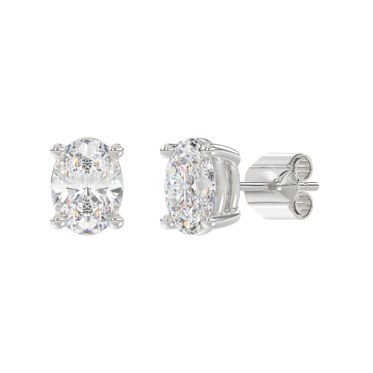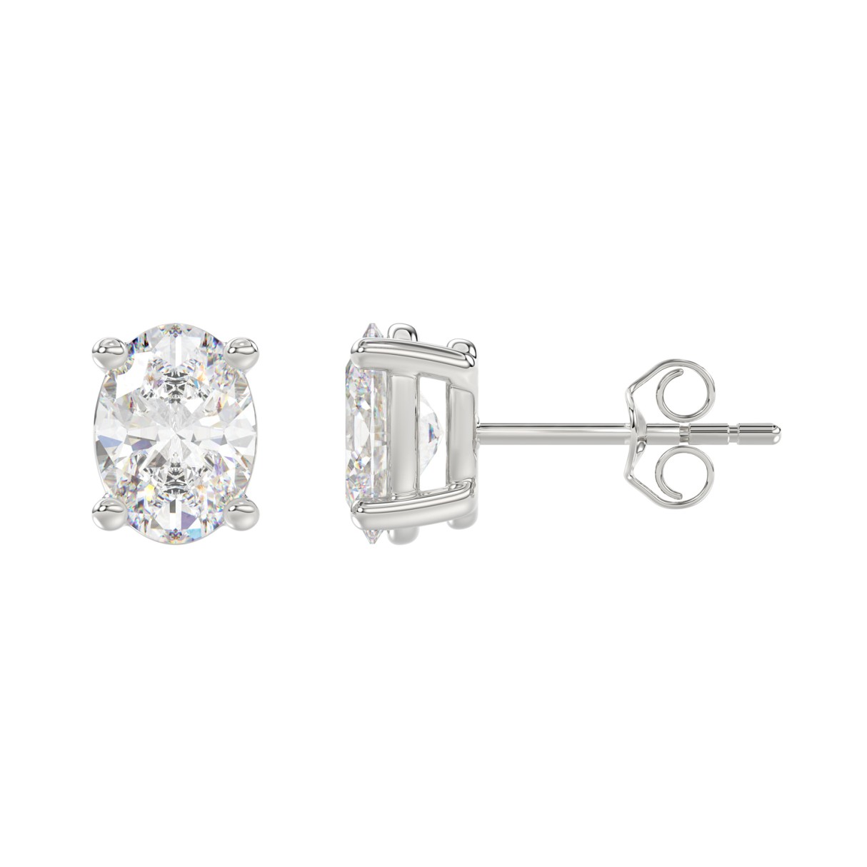 LADIES SOLITAIRE EARRINGS 4.00CT OVAL DIAMOND 14K WHITE GOLD (CENTER STONE OVAL DIAMOND 2.00CT)