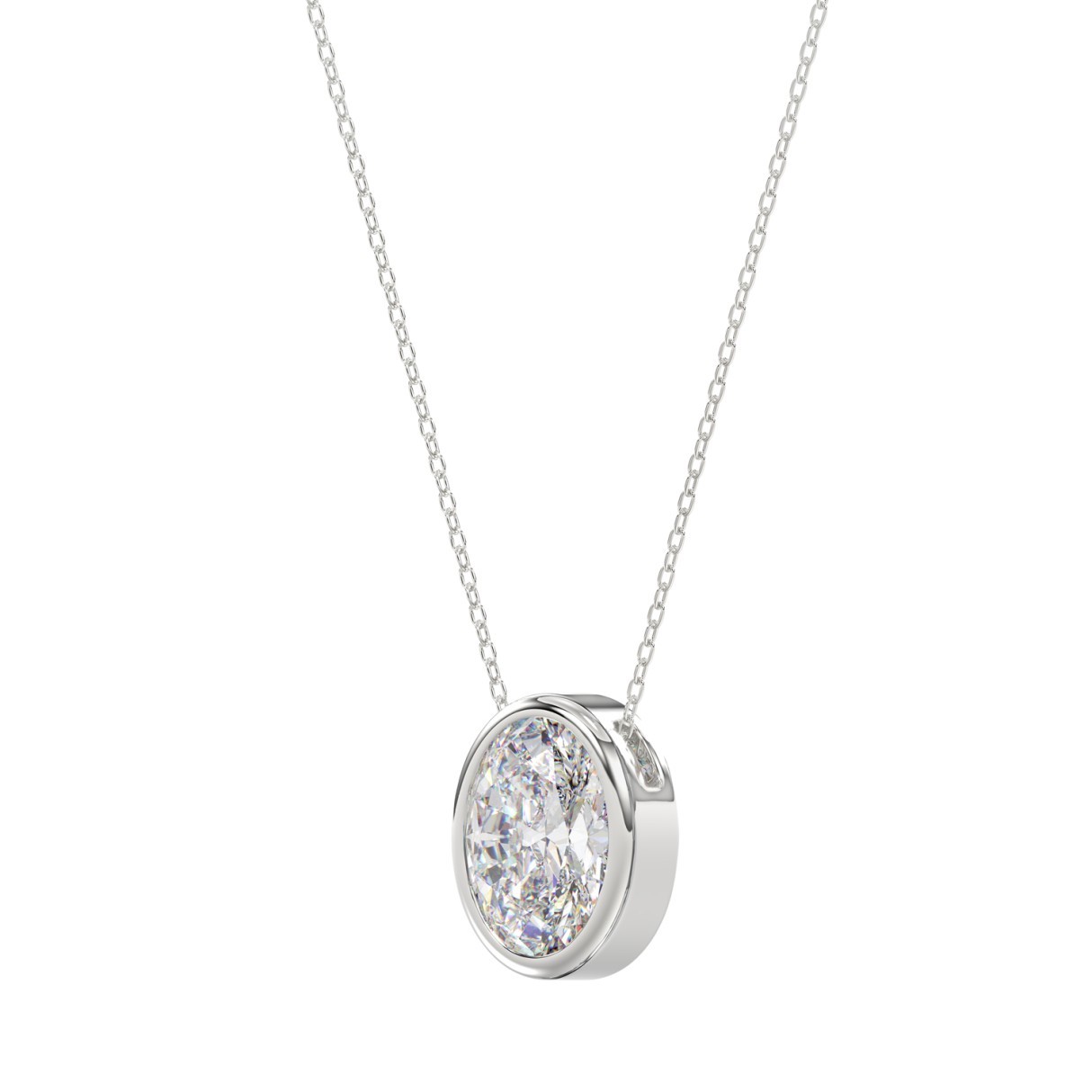 LADIES SOLITAIRE PENDANT 1CT OVAL DIAMOND 14K WHITE GOLD WITH CHAIN