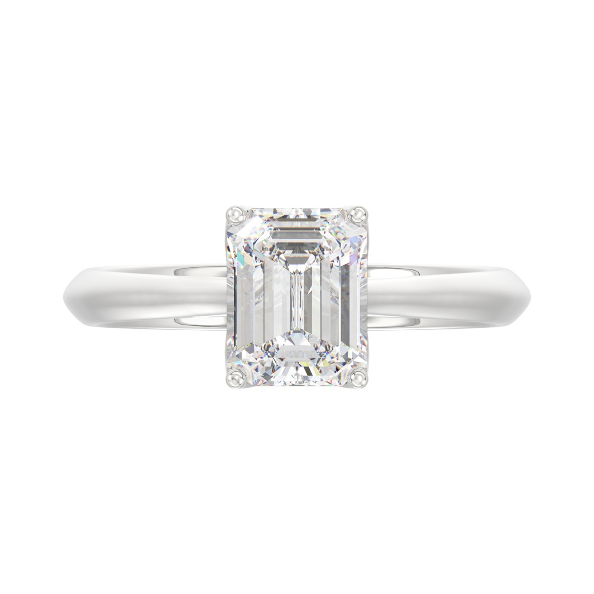 LADIES SOLITAIRE RING 2CT EMERALD DIAMOND 14K WHITE GOLD
